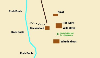 Our accommodation rates are based on a two-person stay per night. Boekenhout, Kiaat and Witstinkhout cottages can sleep two, Red Ivory and Wild Olive cottage can sleep four adults and two kids.